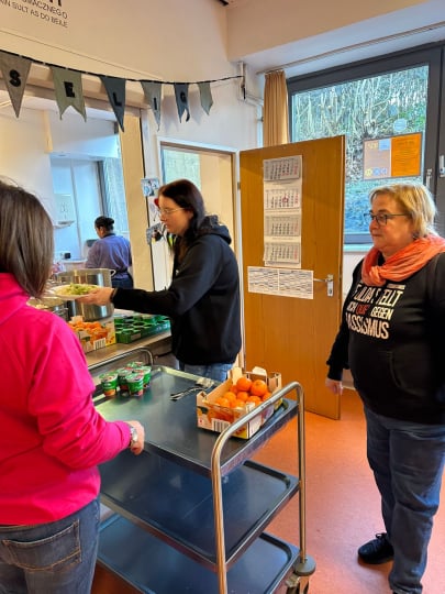 Ein kostenfreies, ausgewogenes Mittagessen in freundlicher, offener Atmosphäre.